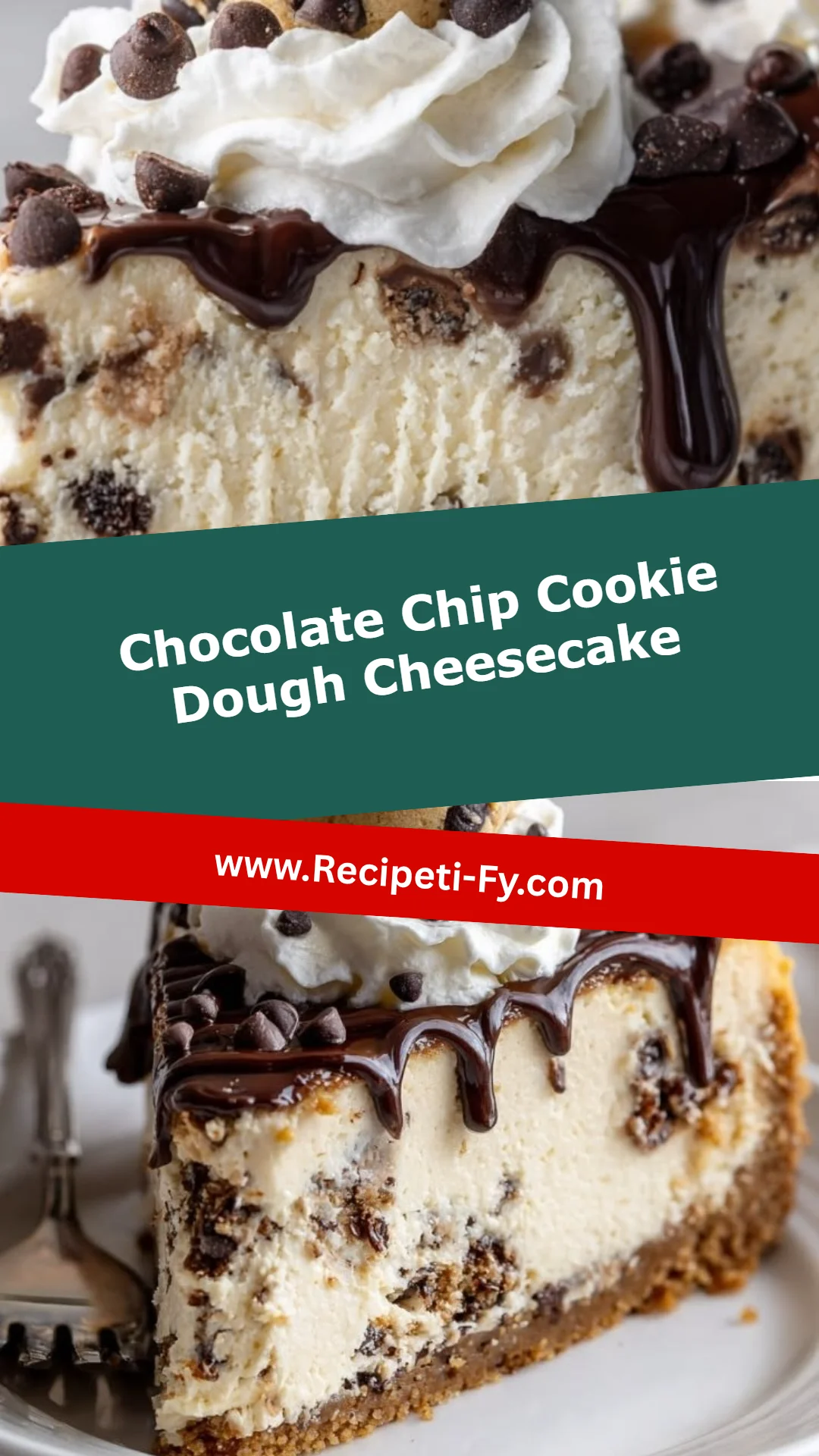 Chocolate Chip Cookie Dough Cheesecake is a rich, creamy dessert combining classic baked cheesecake with edible cookie dough bites and a buttery graham crust. It delivers a silky filling, cookie dough pockets, and a warm chocolate drizzle for indulgent flavor and satisfying texture.